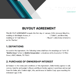 - Clarity and Specificity: The agreement should be clear, concise, and specifically outline the terms and conditions of the Divorce BuyOut.